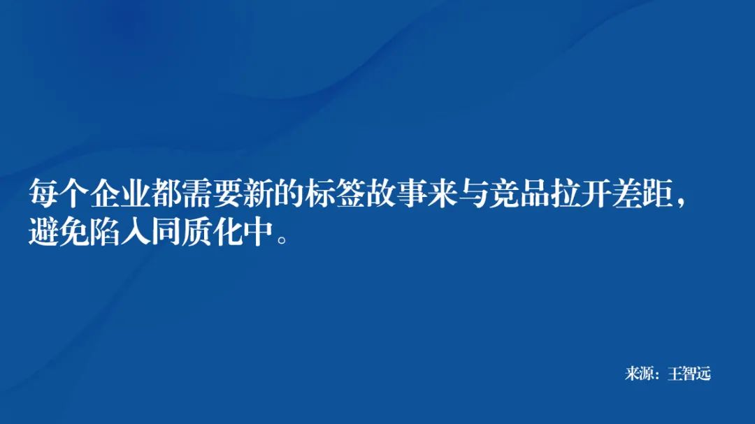 因此,每个企业都需要新的标签故事来与竞品拉开差距,避免陷入同质化中,最后头破血流的只拼产品功能,全军覆没。