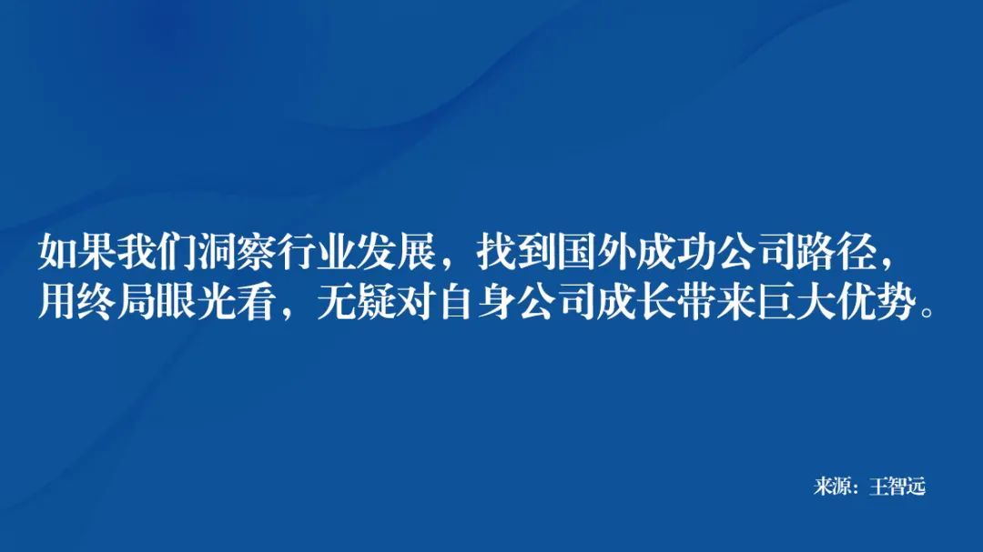 进一步说如果我们洞察行业发展,找到国外成功公司路径,用终局眼光看,那无疑对自身公司成长带来巨大优势。