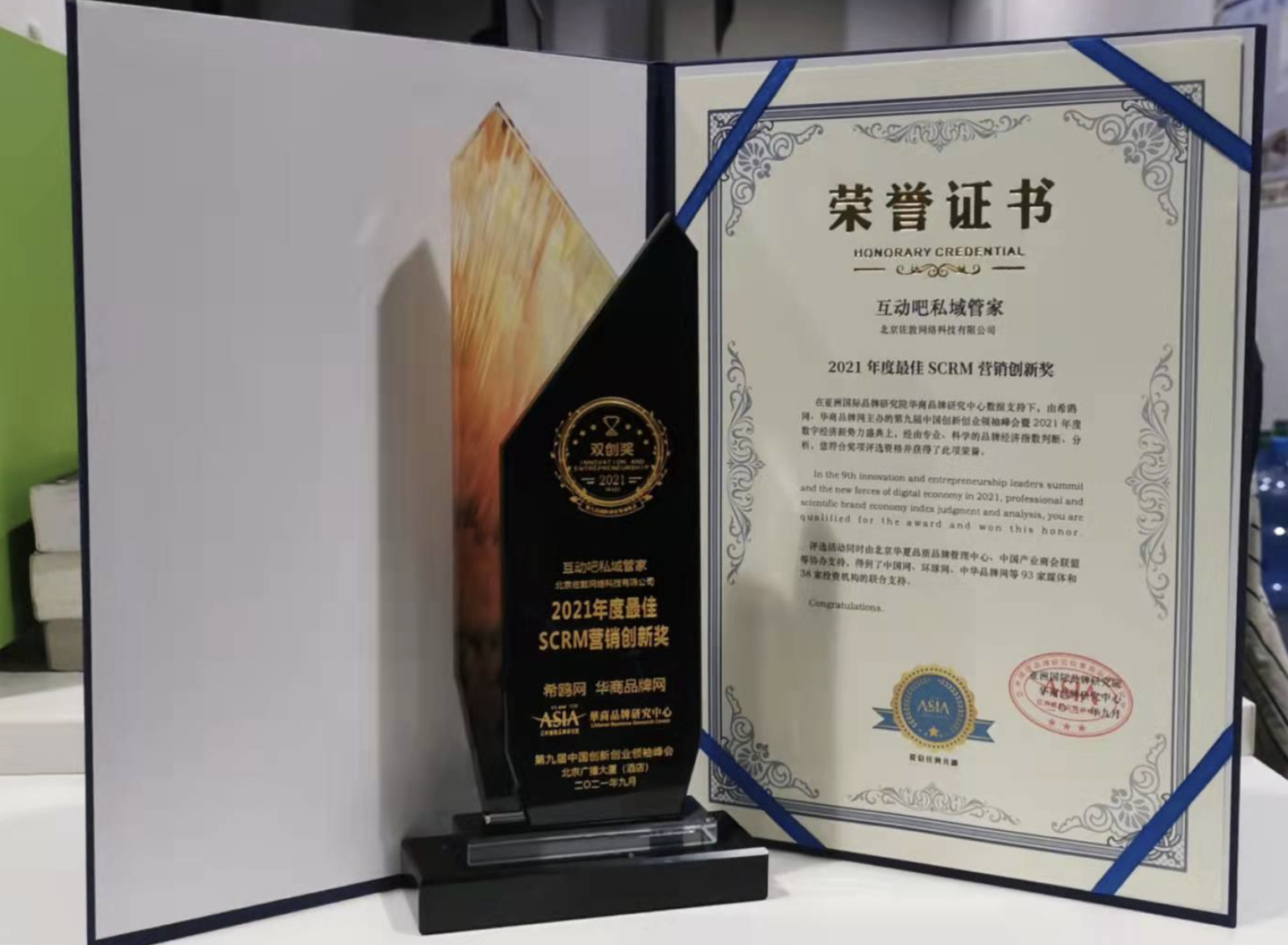 2021年9月25日,第九届创新创业领袖峰会暨2021数字经济新势力盛典在北京举行,现场数家上市公司代表、50+A轮以上企业、600+创业者到现场互动交流。互动吧副总裁、私域营销院执行院长、私域一姐——奉奉子玲应邀出席了本次论坛,并围绕“连接活动与私域”这个话题,分享了自己的观点与见解。在大会的重磅环节——“数字启动未来”2021 数字经济新势力盛典上,互动吧私域管家凭借过硬的产品实力,荣获“2021年度最佳SCRM营销创新奖”。