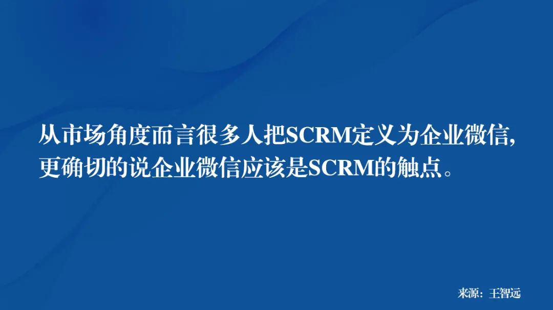 从市场角度而言很多人把SCRM定义为企业微信,这是种狭义的说法造成众多软件在早期就放弃“红利”机会,更确切的说企业微信应该是SCRM的触点。