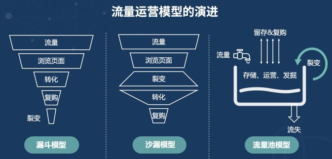 图:流量运营模型的演进,来源:知乎通过这个形象生动的流量运营模型演进图,能更好地理解私域流量营销裂变、拓展拉新的运作机制。